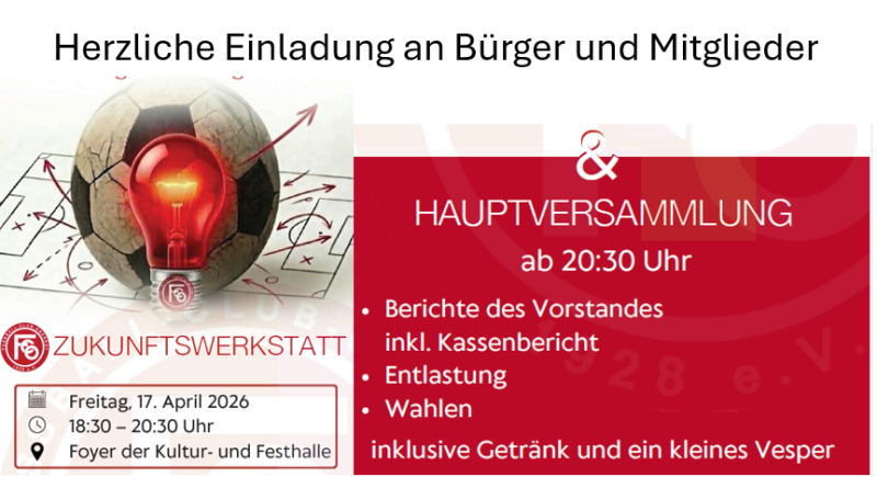 Einladung zur Zukunftswerkstatt und Generalversammlung 2026 des FC Oberrot 1928 e.V.