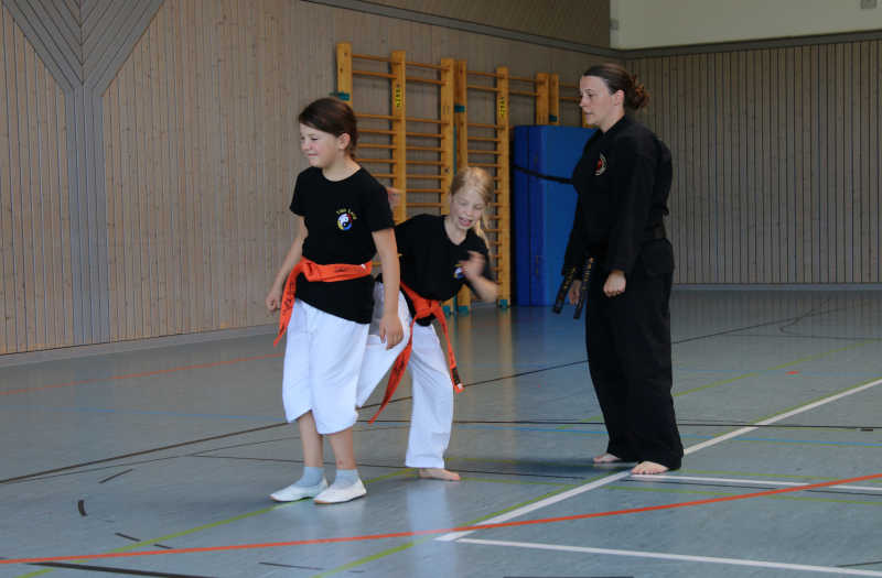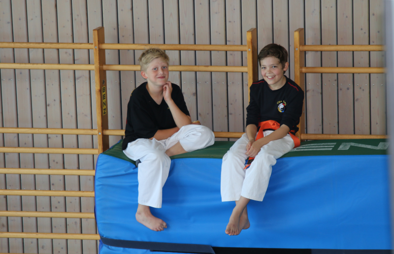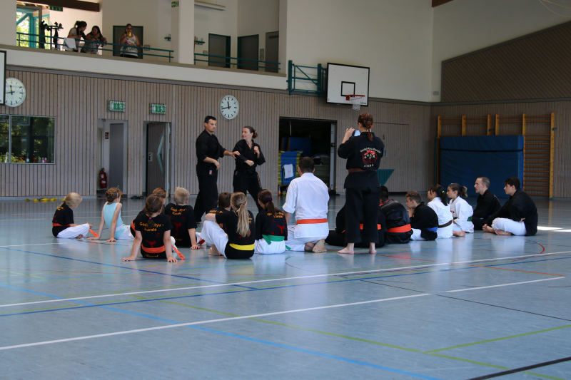Weiter ging es dann mit den Großen, die Samstag noch ein hartes Trainingsprogramm absolvieren mussten, am Sonntag in der Sporthalle. Die Prüflinge mussten zeigen, was sie in den letzten Monaten gelernt und fleißig geübt hatten und wurden auch mehrfach auf die Probe gestellt. Zum Schluss schafften aber auch sie es, die doch um einiges schwierigere Prüfung zu bestehen und bekamen als Belohnung dann von gelb, orange bis hin zu grün und sogar blaue Gürtel. Zwei von den Prüflingen waren sogar so gut, dass sie beinahe die Prüfung mit einer Auszeichnung abgeschlossen hätten. So durfte sich jeder nach bestandener Prüfung über einen neuen Gürtel freuen.