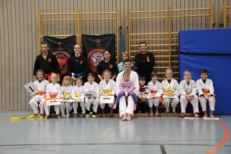 Die diesjährige Gürtelprüfung fand am Wochenende vom 17.12. bis zum 18.12.16 statt. Den Anfang machten Samstag die ganz Kleinen, bei dem der Schwerpunkt "Gefahr erkennen und entsprechend handeln" im Fokus stand. Alle Prüflinge, angefangen bei dem Kleinsten mit gerade mal 2 Jahren bis zu den ältesten mit 6, bestanden diese Prüfung mit Bravour und erhielten als Belohnung den gelben Gürtel.
